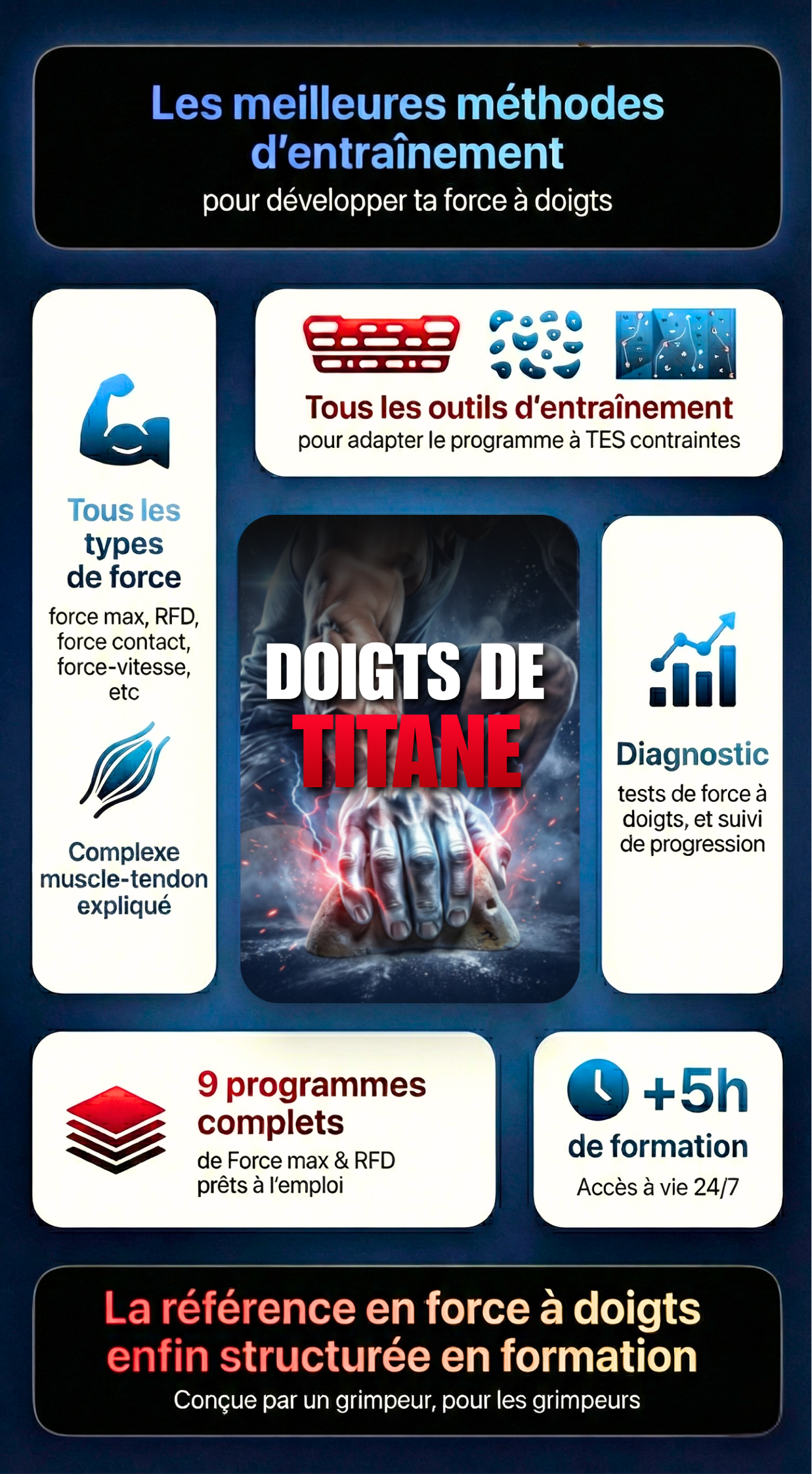 Une formation complète, structurée, qui te montre comment développer une force à doigts de machine quelque soit ton niveau